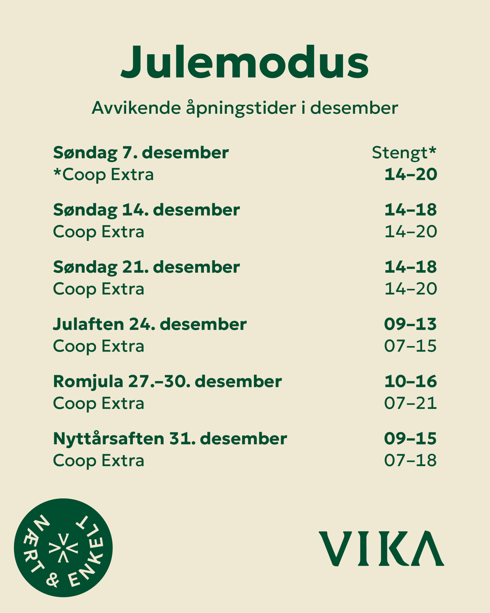 Det skal være enkelt å handle hos oss. Derfor holder vi oppe flere søndager før jul, slik at du alltid kan stikke innom oss.